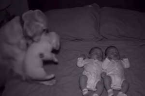 The dogs’ instinct to protect and care for others is a well-known trait, and this behavior, shown in the video, is a beautiful reminder of the nurturing nature of pets. The image of a dog gently bringing its puppy to rest beside two sleeping babies speaks to the deep connection animals can have with children, often becoming part of the family and forming a bond that goes beyond simple companionship.