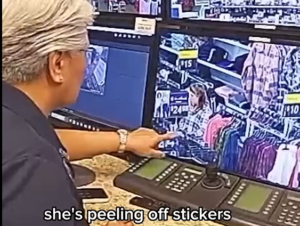 The footage showed her removing stickers from items, an act that raised immediate concern for store staff monitoring the cameras.