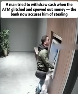 The man stood there, frozen, watching as the machine continued to release money far beyond the amount he had requested.