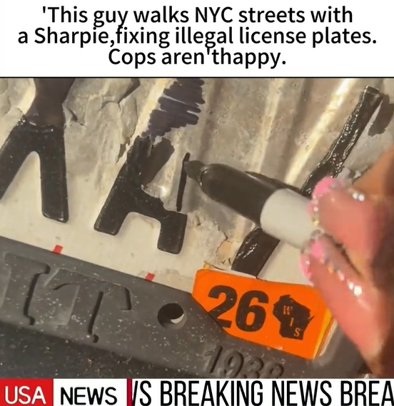 It all started when a local New Yorker was spotted walking down the streets of the city, Sharpie in hand, making adjustments to the license plates of cars that had illegal covers. According to reports, the individual was seen drawing over the obstructed numbers and letters of the plates, effectively “fixing” the illegally covered plates and making them visible again. His reasoning behind this unusual act was his belief that these plates were being used to evade tolls and traffic fines, and that he was performing a public service.