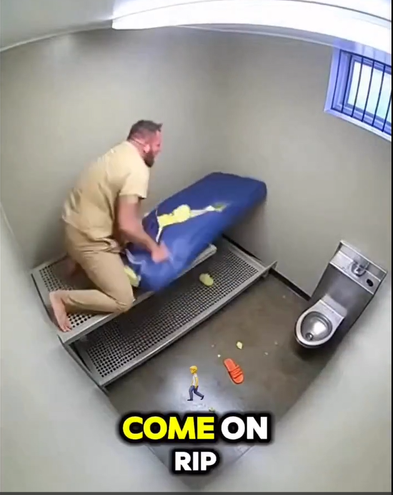 The video begins with the prisoner in his jail cell, seemingly in a state of agitation. He is barefoot, wearing the standard prison uniform, and is visibly upset. In the confined space of the cell, he begins to lash out. The first sign of distress is when he lifts his mattress and throws it across the small room, as if trying to exert control over something in an environment where he has no control at all.