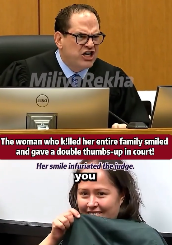 Courtrooms are places of justice, where the law is meant to prevail over personal emotions and biases. However, sometimes, the emotional reactions of those involved can overwhelm the legal process. One such moment occurred during a high-profile trial when a woman, accused of committing a horrific crime, smiled and gave a thumbs-up in court. The reaction of the defendant was so shocking that it caused an explosion of fury from the judge, leaving the courtroom in stunned silence.