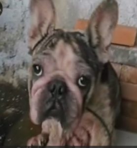 In a small, damp corner surrounded by worn walls and silence, a little dog looked up with eyes that seemed to hold a thousand unspoken stories. His face, marked by patches of irritated skin and visible discomfort, reflected a life that had not been easy. Yet, despite everything, there was something striking about him—something that made it impossible to look away.