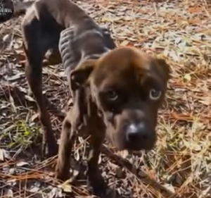In a quiet patch of land covered in dry leaves and scattered debris, a small dog stood almost motionless, his presence blending into the surroundings as if he had become part of them. At first glance, it was easy to overlook him, not because he wasn’t there, but because his body had become so thin and fragile that he seemed to disappear into the background. His ribs were sharply visible beneath his skin, each one outlining the extent of the hardship he had endured. His legs appeared weak, barely able to support him, yet he remained standing, as if sitting down might mean he would not have the strength to rise again.