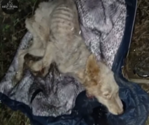 A small, weakened body lies still, wrapped in a blanket that feels both comforting and heartbreaking at the same time. The contrast is impossible to ignore. Softness surrounding fragility. Warmth attempting to hold together something that has been through far too much.