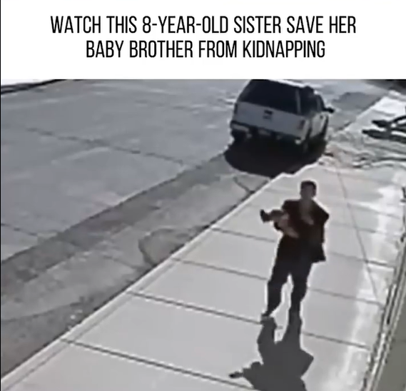The events began on a quiet afternoon, when a man approached the young girl and her baby brother, who were outside. According to the surveillance footage, the man, seemingly with the intent to kidnap, grabbed the baby boy. He made his move with calculated speed, likely hoping to catch the children off guard. However, what he didn’t expect was the quick intervention of the 8-year-old sister.
