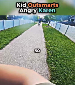 In today’s world, where online content and viral moments spread like wildfire, the latest viral video of a young child outsmarting an angry adult neighbor, often referred to as a “Karen,” has captured hearts worldwide. The viral clip, filled with humor, cleverness, and a touch of irony, shows a tense encounter between a child and an adult, only for the tables to be turned in a surprising and comedic manner. The child remains calm, even witty, in the face of aggression, ultimately outsmarting the angry neighbor and leaving viewers with a sense of justice — and plenty of laughter.