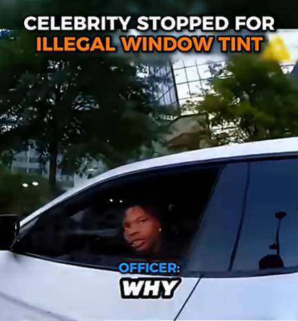 The caption suggests that the stop may be related to window tint regulations, something that, while seemingly minor, is a common reason for traffic stops. Laws regarding window tint vary by location, but they are generally in place for safety reasons—ensuring visibility for both drivers and law enforcement. When windows are too dark, it can make it difficult for officers to see inside the vehicle during a stop, which can increase uncertainty and risk.