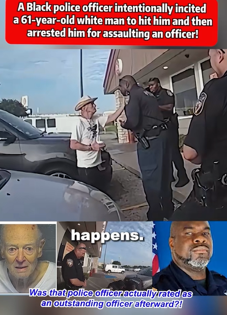 In a moment that has sparked national debate and intense scrutiny, a controversial confrontation between a police officer and a civilian has gone viral, leaving many questioning the boundaries of law enforcement authority and the ethical responsibilities of those sworn to protect the public. The incident involves a Black police officer and a 61-year-old white man who was allegedly provoked into striking the officer, only to be arrested moments later for assaulting an officer. What might have been a routine interaction quickly escalated into a disturbing display of conflict, confusion, and questionable conduct.