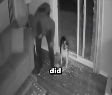 The second image features the homeowner’s dog, which appears ready to confront the burglar. Dogs are known to have protective instincts, especially when they sense their home is being violated. In many cases, animals—particularly guard dogs—are trained to respond to such situations. The homeowner’s dog likely interpreted the break-in as a threat, causing it to act in self-defense, as dogs do when their territory is breached.