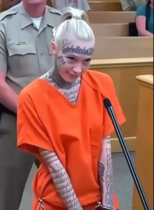 The woman in question, who appeared before the judge in an orange jumpsuit, was marked by tattoos covering her face and neck, a decision that had already caused some to judge her even before her case was heard. As the video of her court appearance circulated, people couldn’t help but notice her nonchalant demeanor. With her head slightly tilted and a smile that some described as almost mocking, she faced the judge with what many perceived as a lack of respect for the proceedings.