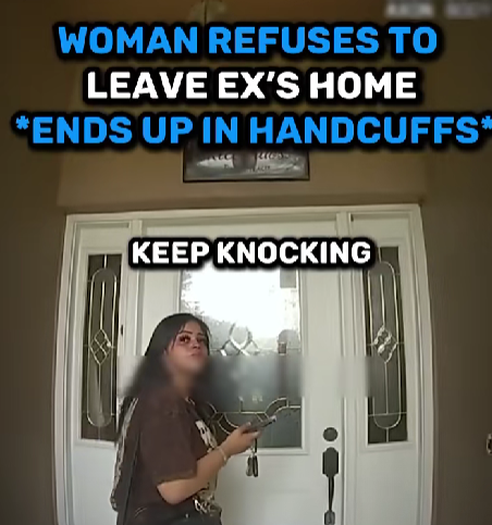 A quiet suburban neighborhood became the backdrop for a viral confrontation after a woman refused to leave her ex-boyfriend’s property, despite repeated warnings and the arrival of law enforcement. The entire encounter, recorded by a doorbell camera and later supplemented by police bodycam footage, has sparked widespread debate about breakups, boundaries, and the legal consequences of ignoring both.